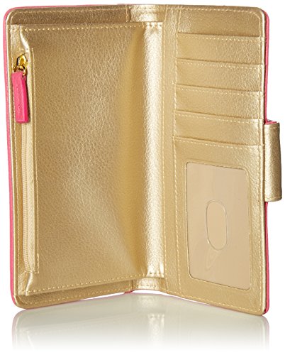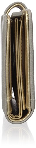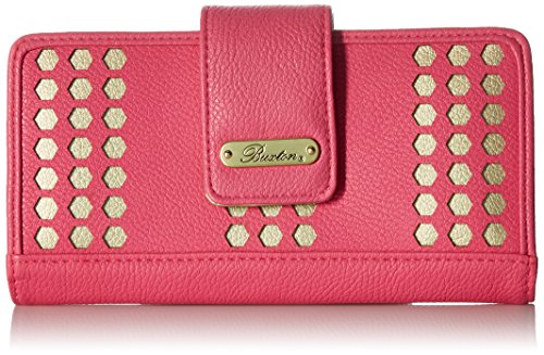 Studio : Buxton Publisher : Buxton Binding : Apparel Product Description Custom laser cut synthetic leather with metallic underlay, synthetic leather trim and satin goldstone logo plaque/hardware hex laser cut metropolitan wallet features a tab closure that opens to 4 credit card slots, an i.e. Window, 2 slip pocket and a large zipper pocket that snaps open to expose a gusseted pocket. 0