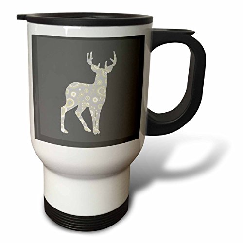 3dRose tm_185460_1 Buck Paisley Pattern Grey and Yellow Stainless Steel Travel Mug, 14 oz, White
