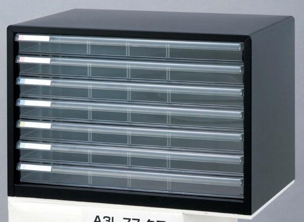 ok丈夫なスチール製で、大容量のA3サイズのレターケースです。カラー分類ができるタイトルシール付きです。シールは5色の使い分けができます。 サイズ W494×D335×H346mm 個装サイズ:51×35×37cm 重量 6.7kg 個装重量:7500g 素材・材質 本体:スチール 粉体焼付塗装、引出し:透明スチロール樹脂、引出し段板:ポリプロピレン 製造国 日本  大容量のA3サイズ・ヨコ型のレターケース。  画像は上からシロ、クロ、ニューグレーです。 ●A3ヨコ型/浅7段 ●浅引出し:W453×D311×H36mm ●付属品:カラー分類タイトルシール付き ●対応オプション仕切板(別売) ・A3ヨコ型浅引出し用 AS-12S ・A3ヨコ型浅引出し用 AS-22S  丈夫なスチール製で、大容量のA3サイズのレターケースです。カラー分類ができるタイトルシール付きです。シールは5色の使い分けができます。