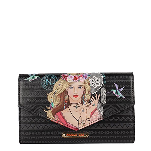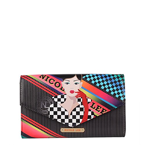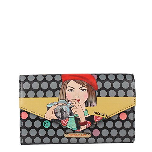 Studio : Nicole Lee Publisher : Nicole Lee Binding : Apparel Product Description Travel in style with our Nicole Lee Malia Travel Wallet With RFID Blocking it will help you be organized and to protect all your documents. Exterior Features: Made of vegan leather, exclusive Nicole Lee prints, front flap top with snap closure, detachable shoulder strap, structured silhouette and NL nameplate at front. Interior Features: Multi-functional pockets that would help you organized all documents for your trip, boarding pass pocket with zip closure, tickets, passport, documents and other pockets with NL polka dot nylon lining. RFID (Radio-frequency identification) BLOCKING WALLET. The fight against identity theft starts with your wallet. Nicole Lee Wallet is manufactured with RFID-Blocking technology that prevents reader device signals from penetrating your wallet keeping your contents secure. Includes adjustable and detachable 44" - 53" inch shoulder strap. Colors available are Bike Tour, Lily Loves To Shake, New York With Style, Elsa's Dream Catcher, Barroquial Europe, Racing Girl. For cleaning, wipe with damp cloth. 0