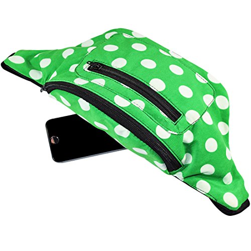 -. Title : Santa Playa Polka Dot Fanny Pack, Hidden Pocket, Party, Boho Chic & Handmade (Polka Dot Green)
