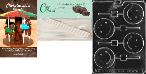 Cybrtrayd 'Smile Lolly' Kids Chocolate Candy Mold with 25 4.5-Inch Lollipop Sticks and Chocolatier's Guide