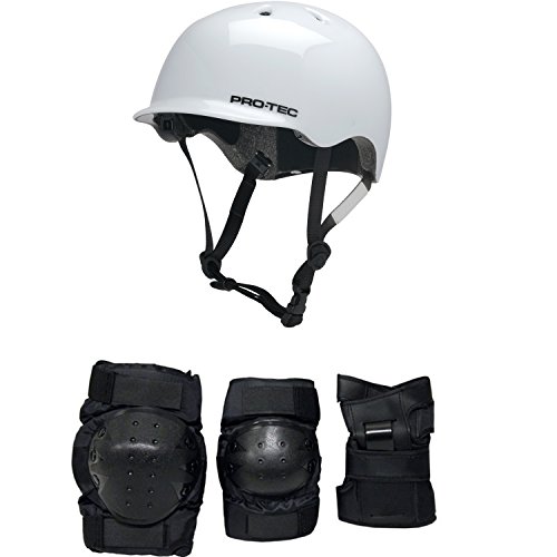 -. Title : Pro Tec Bike Helmet RIOT STREET Gloss White With KNEE/ELBOW/WRIST PADS Sz S