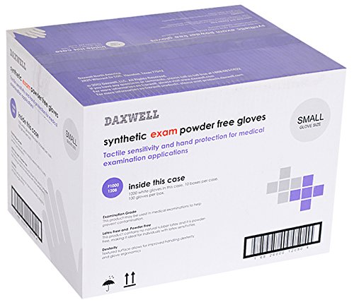Daxwell Synthetic Exam Gloves, Powder Free, Small, White (10 Boxes of 100 Gloves)