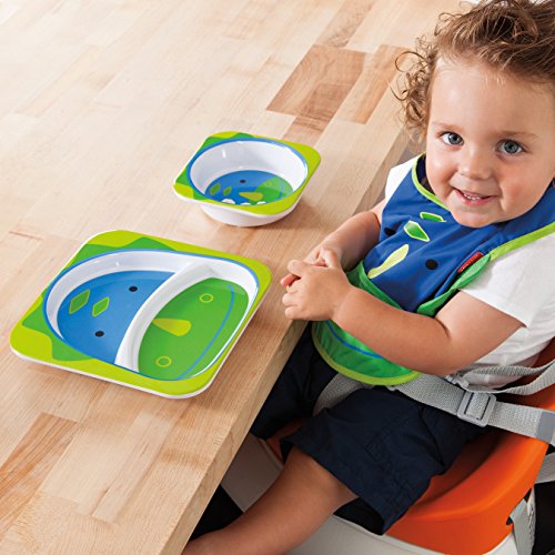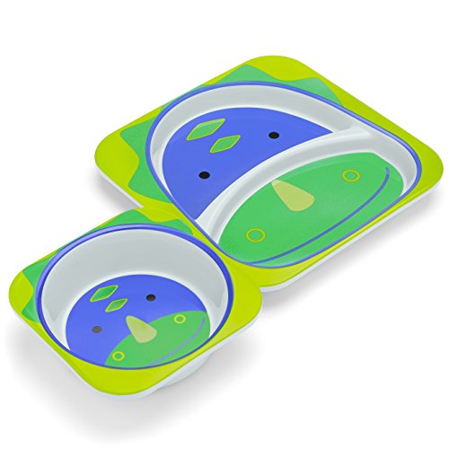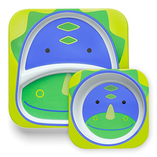 Skip Hop Baby Zoo Little Kid and Toddler Feeding Melamine Divided Plate and Bowl Mealtime Set, Multi Dakota Dinosaur
