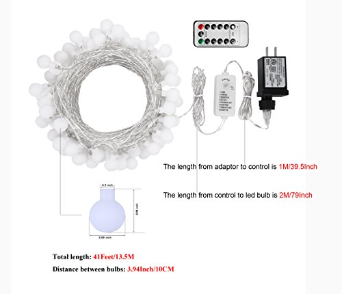 - 33ft/10m 100 LED Globe Ball String Lights with Remote and Timer-UL Listd adaptor plug and 8 modes controller to achieve different flash modes effect. ( Remote is included)
