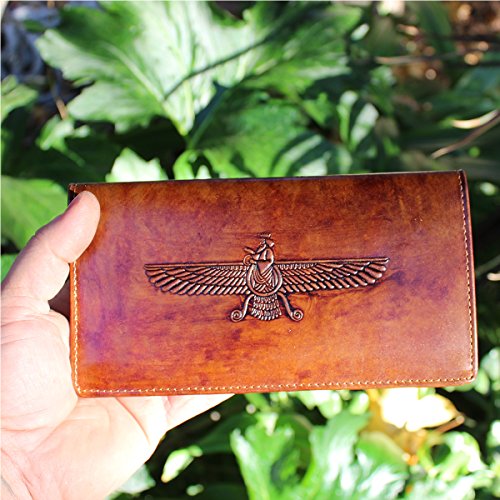 (ASOODEHDELAN)/Accessories/Wallets, Money Key Organizers/DIRECT FROM USA/Asoodehdelan Unisex Genuine Leather Farvahar Faravahar Checkbook Wallet Persian Art
