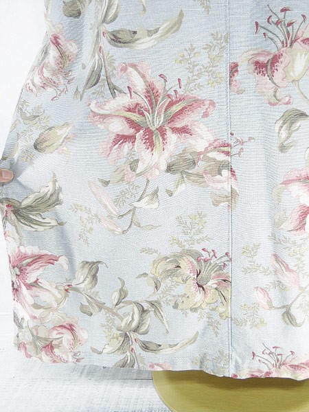 Ladies ブランド- カラー水色ベース メール便不可 コンディション★★★ 素材コットン 表記サイズS 実寸サイズ 着丈 132 cm 身幅 49 cm スリット 29 cm ※ウエスト・ヒップ以外は平置き採寸