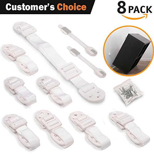 Furniture Anchors Straps Baby Proofing – 8 Pack – Keep Children Safe From Falling/ Tipping Appliances – Attach Furniture to Wall – For Dressers, Fridges,...