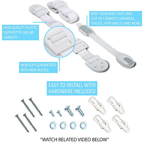 - ✔ EARTHQUAKE & CLIMB PROOF SAFETY… stops appliances, tv’s, & furniture from tragically falling on toddlers. Whether it’s an earthquake or a climbing baby, these straps stop furniture becoming weapons.