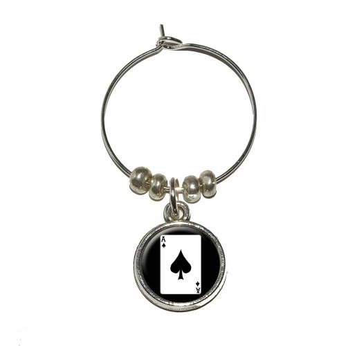 -. Brand : Graphics and More -. EAN : 0095614496349 -. Feature : Unique and functional super awesome wine/drink charm / Includes the urethane encased design on both sides of the metal charm / Approximate size of charm is 15mm / Charm is sold individually / Sorry, wine is not included. :-) -. Label : Graphics and More -. Manufacturer : Graphics and More -. MPN : CHARM_WINE_0109 -. PackageQuantity : 1 -. PartNumber : CHARM_WINE_0109 -. ProductGroup : Kitchen -. ProductTypeName : KITCHEN -. Publisher : Graphics and More -. Studio : Graphics and More -. Title : Playing Cards Ace of Spades Wine Glass Charm Drink Stem Marker Ring -. UPC : 095614496349