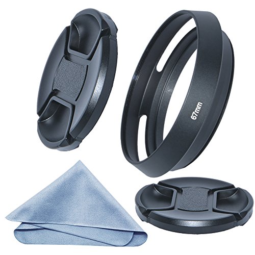 SIOTI 67mm Camera Tilted Vented Metal Lens Hood + Cleaning Cloth + 2pcs Lens Cap(67mm suit for Lens,72mm suit for Lens Hood) for Standard Thread Lens