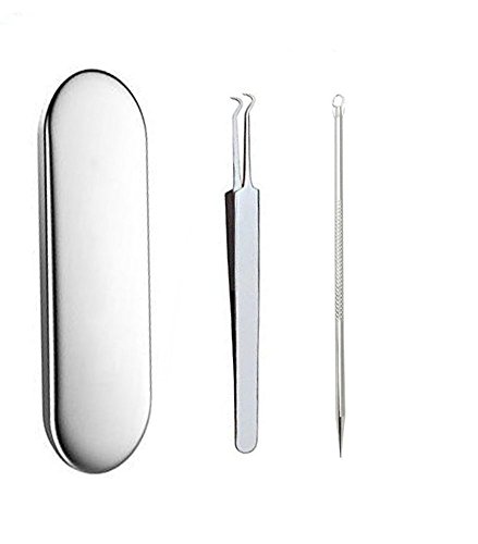1 Set(2pcs) Stainless Steel Professional Blackhead Remover Kit Acne Treatment for Fat Granule Comedone Pimple Extractor Nose Face Skin with Metal Case for...