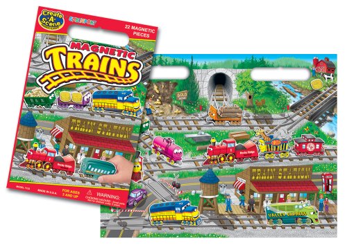-. Binding : Toy -. Brand : Patch Products Inc. -. EAN : 0796317576276 -. Feature : Products that are great fun from children to adults / High quality toys and games / Games and toys that the whole family can enjoy / Includes magnetic play board; 22 magnetic playing pieces / Includes waterproof vinyl magnets / The vinyl magnetic playing pieces provide extra hold -. IsAdultProduct : 0 -. ItemPartNumber : 095104 -. Label : PlayMonster LLC -. Manufacturer : PlayMonster LLC -. Model : 7133 -. MPN : 095104 -. PackageQuantity : 1 -. PartNumber : 095104 -. ProductGroup : Toy -. ProductTypeName : TOYS_AND_GAMES -. Publisher : PlayMonster LLC -. Studio : PlayMonster LLC -. Title : Magnetic Create-A-Scene Kit-Trains -. UPC : 921372524713 -. Warranty : No Warranty