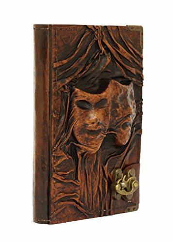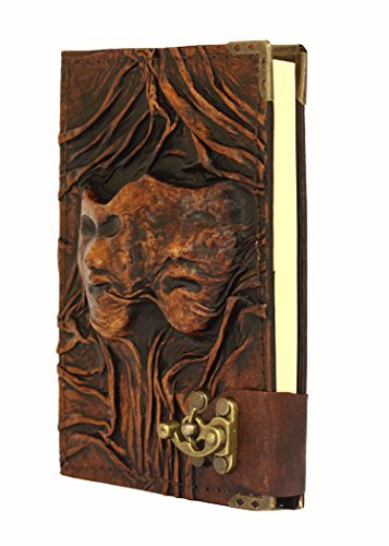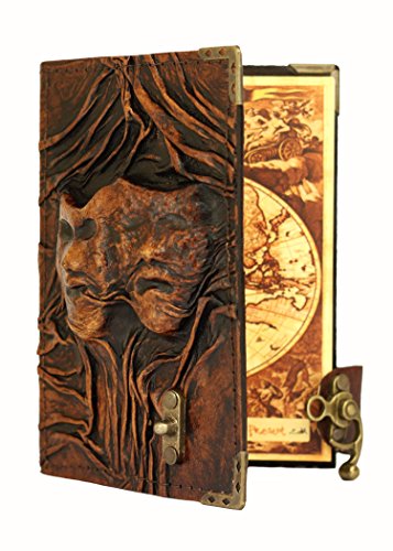 - Title : Embossed Happy Sad Drama Mask on a Brown Leather Journal Vintage Style Notebook Daily Diary Sketchbook Pad Handmade Pocket Book Womens Mens Children Office Ladies Writing Drawing