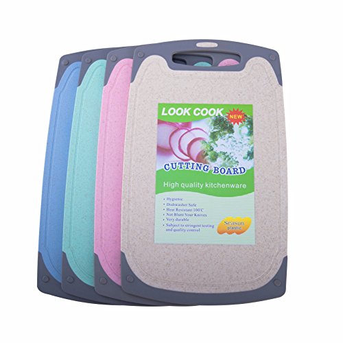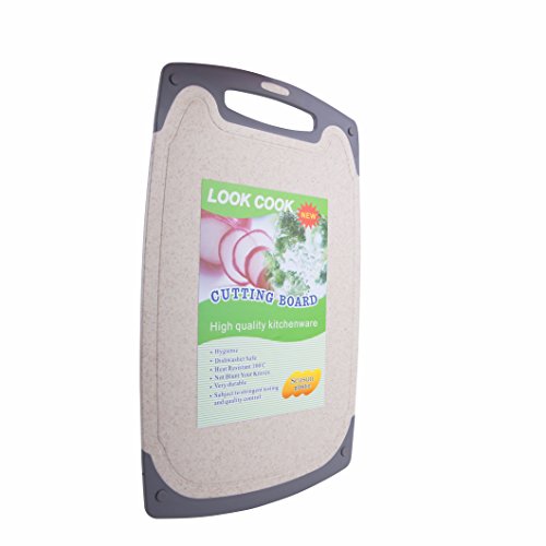 Dishwasher Safe Large Plastic Cutting Board With Non-Slip Silicone Edges and Drip Juice Groove. (Yellow)