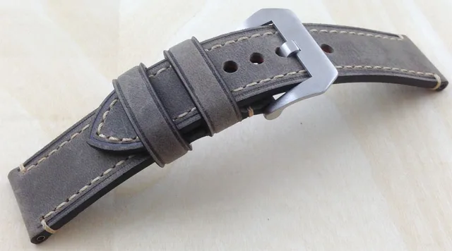도매 10 개/ lot 20mm 24mm 22mm 진짜 가죽 시계 밴드 시계 미친 말 가죽 스트랩 남자 시계 스트랩 회색- wb120702
