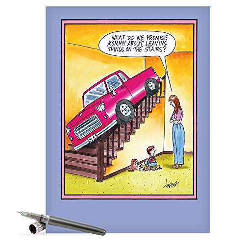 J0317 Jumbo Funny Mother's Day Card: Leaving Things on Stairs With Envelope (Extra Large Version: 8.5'' x 11'')