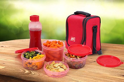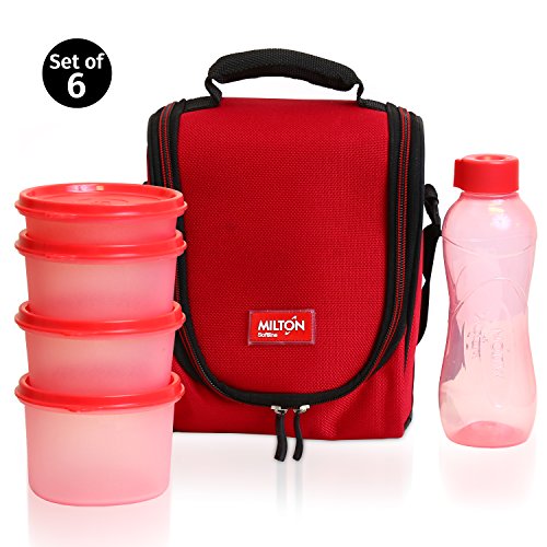 Milton LUNCH BAG ~ SET of 6 ~ Insulated Lunch Box With Reusable and Leak Proof Containers and Water Bottle High Quality Double Zipper Lunch Bag For Adults and Kids ~Great for School~ Red