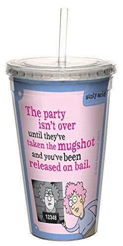 Tree-Free Greetings 16-Ounce Double-Walled Cool Cup with Reusable Straw, Aunty Acid Released on Bail (CC98502)