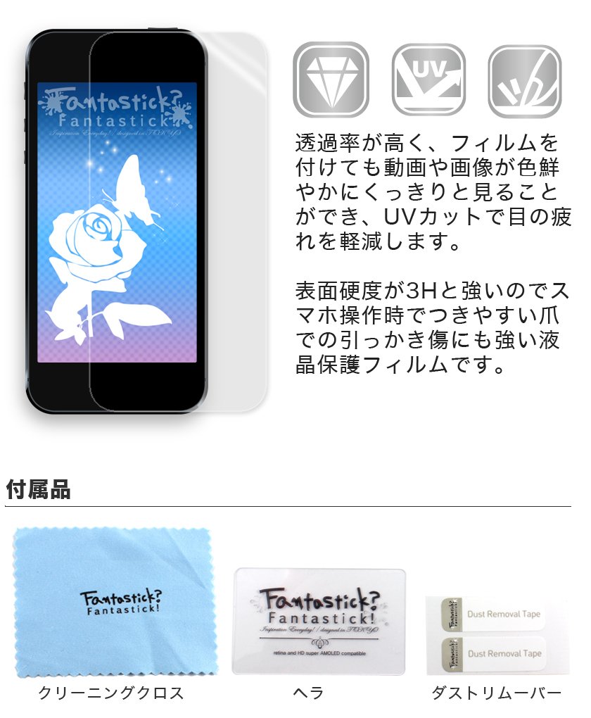 It is also beautiful and strong liquid crystal protective film that can be used without worrying about scratches even with women's nailed hands because it is also strong against scratches with nails which are easy to attach at the time of smartphone operation with surface hardness 3H.