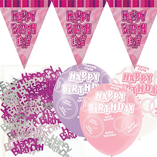 Studio : Balloons and Party Publisher : Balloons and Party Binding : Toy Product Description Each of these fantastic classic banner party packs includes a 12ft flag banner, 2 packs of confetti an assortment of 6 balloons in 3 colours including lilac, pink white all featuring a stylish pink silver circle pattern design. Perfect for celebrating a Birthday in style these stylish decorations are fantastic for any Birthday party and will look great wherever you use them. 0