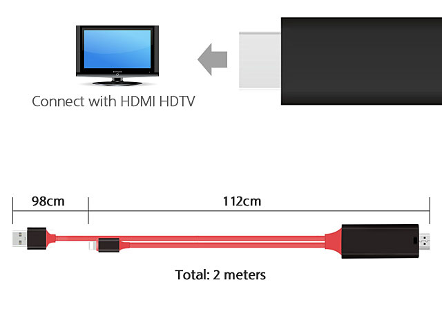 The Lightning Digital AV Cable supports mirroring of what is displayed on your device screen - including apps, presentations, websites, slideshows and more - to your HDMI-equipped TV, display, projector or other compatible display in up to 1080p HD