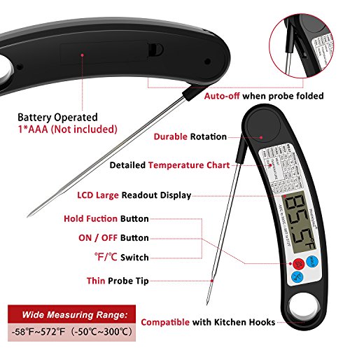 ❈Super Fast & Accurate Meat Thermometer: This kitchen thermometer can read out temperature in 4-5 seconds, great to help you to avoid overcooking; With advanced sensitive sensor chip, excellent to provide accurate temperature;