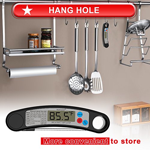 ❈Auto-Off Smart Design: After used, the probe can be foldable and the thermometer will be off automatically; Folded to compact size make it easy to carry like put into the apron pockets, and store in your kitchen drawer or hang in anywhere;