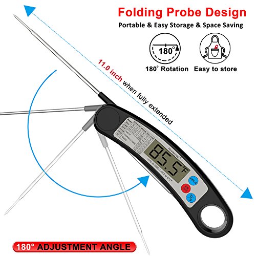 ❈Large LCD Readout Display: The meat thermometer is easy to use, simply open and clean the probe, press ON button and choose ℃/℉, insert into your food or liquid, and read out the temperature in the large LCD display(NEVER use the meat thermometer in a closed OVEN!)