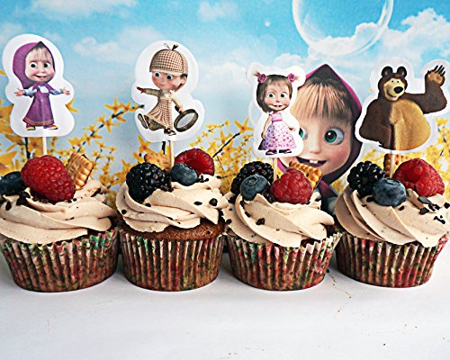 [RusToyShop] 24+24 psc Masha and the Bear party cake cupcake topper + tartlets Masha and the Bear Holiday for Holiday Topper