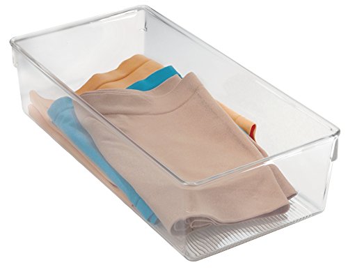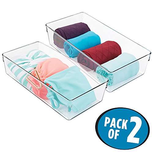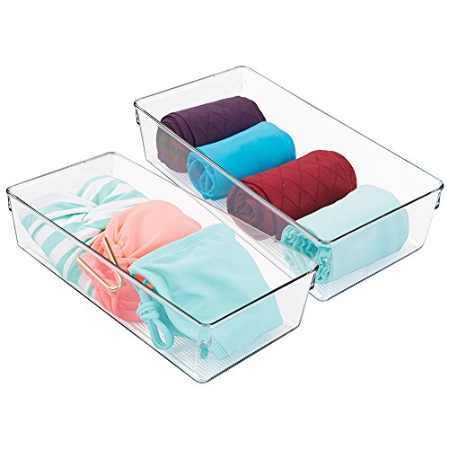 mDesign Dresser Drawer and Closet Storage Organizer for Camisoles, Underwear, Socks, Bras, Tights, Leggings - Pack of 2, 12"x6"x3", Clear