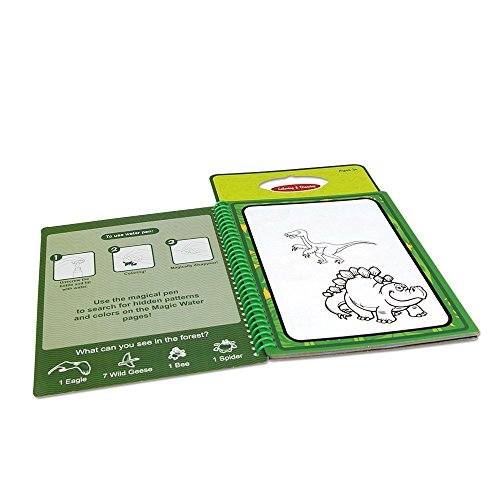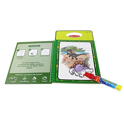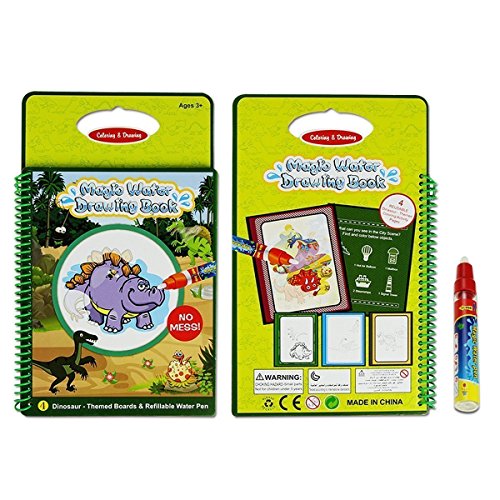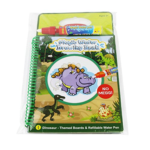 - Size: 10 by 6 inches, Package includes: 4 Pages Dinosaurs water drawing Reveal Book, 1 magic pen.