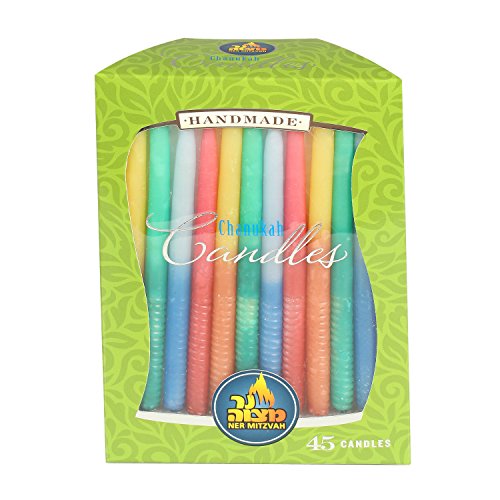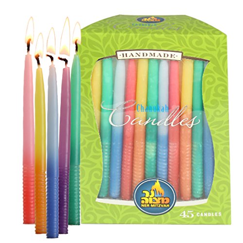 Colorful Dripless Handmade Lined Chanukah Candles - Standard Size Fits Most Menorahs - Premium Quality Wax - Assorted Colors - 45 Count For All 8 Nights of Hanukkah - by Ner Mitzvah