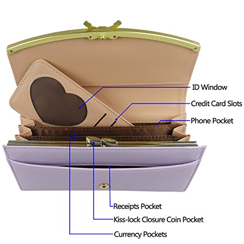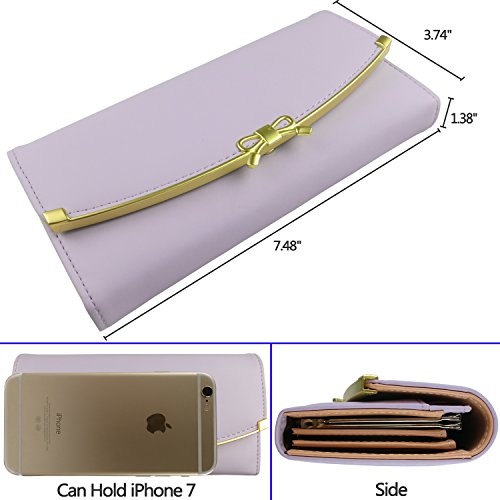 Features: - Material: high quality PU leather, polyester lining, cartoon bow shaped hardware. - Size(LxWxT): 7.48"x1.38"x3.74" / 19x3.5x9.5cm. - Color: Black, Pink, Light Purple. - Structure: Including 4 credit card slots, 1 ID window, 1 receipts pockets, 2 currency pockets, 1 phone pocket(can hold iPhone 7), 1 kiss-lock closure coin pocket. - Lightweight portable wallet, goes great with dress or jean. - Come with a white box, best gift for Birthday or Valentine's Day.