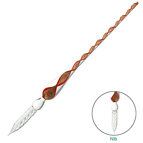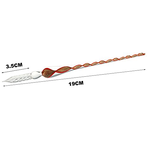 Cute Glass Dip Pen Vintage Handmade Glass Signature Pen Elegant Crystal Dip Sign Gift Pen for Writing Decoration Purposes Christmas Gift (Red)