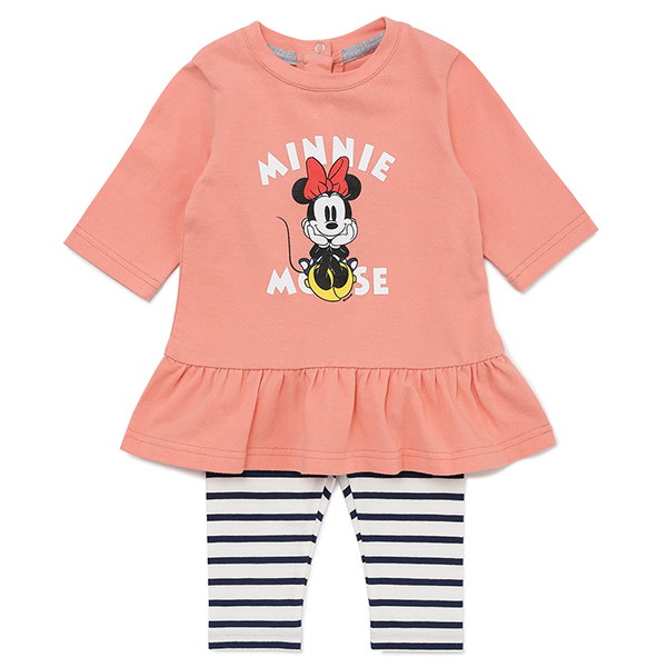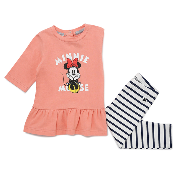 미니 원포인트가 들어간 여아 상하복입니다. 싱의는 7부 소매에 스트라이프로 매치하였으며,제감 프릴단이 매치되어