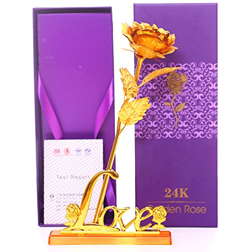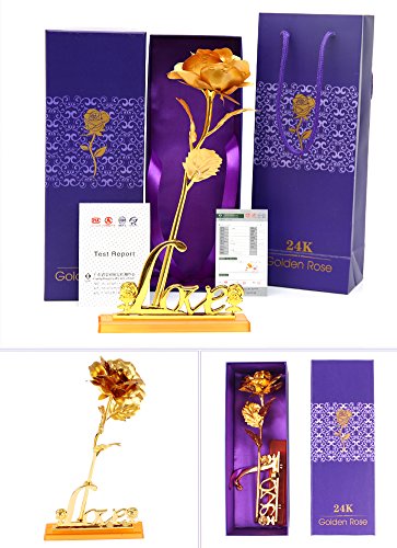 24K Gold Rose, Meiwo Long Stem Gold Rose with Love Letter Display Stand, Perfect Gifts for Birthday, Valentine's Day, Mother's Day, Wedding Anniversary Home Decor(Golden)