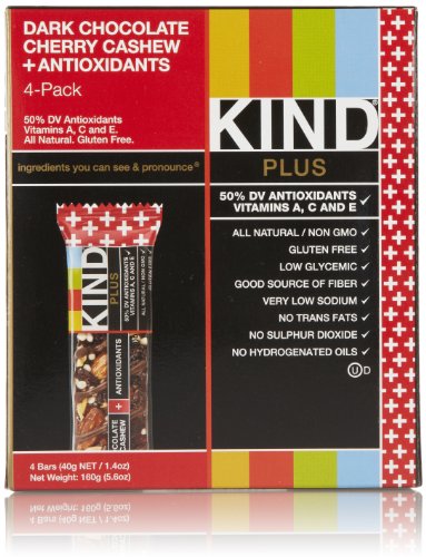 -. Title : KIND Bars, Dark Chocolate Cherry Cashew + Antioxidants, Gluten Free, 1.4 Ounce Bars, 4 Count
