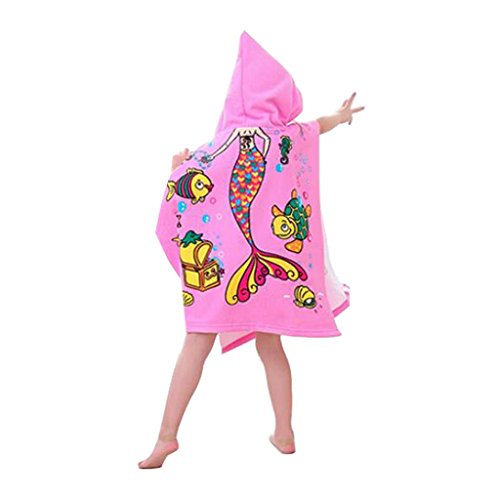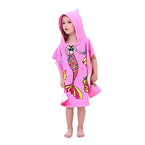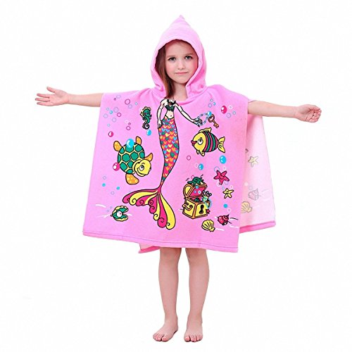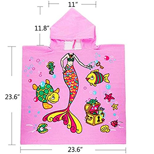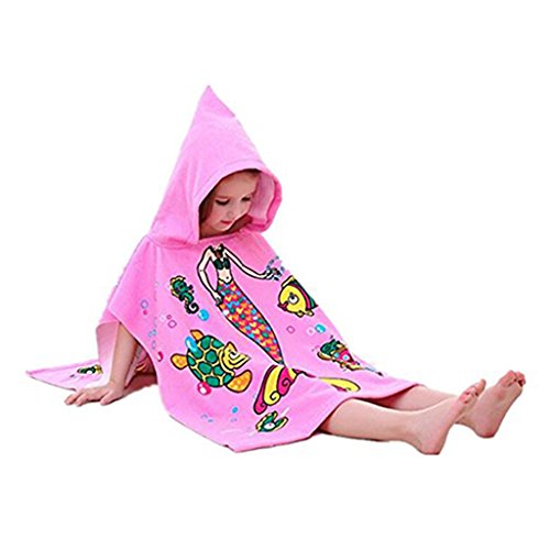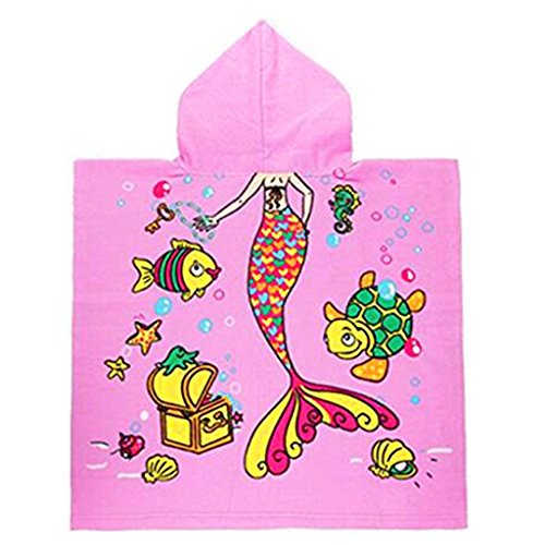 Hooded Towels for Kids Superfine Fiber Printe Creative Section Bathroom Beach Pool Towel (Pink Mermaid)