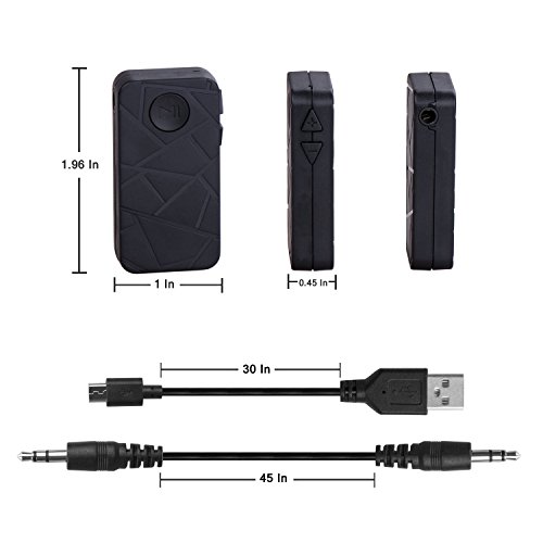 -. Feature : Universal compatibility: Works with iPhone, iPod, iPad, Tablets, Other Smartphone, most speakers, TV, and radio, easily plugs into any powered PC speakers, Car & Home Stereo Sound System and A/V receivers using RCA or 3.5 mm jacks. / Automatically connect: The Bluetooth Receiver will connect to the last connected phone automatically when it turns on. (Please make sure enable the blue tooth function of your phone before turn on the device) / High Quality Sound: Its high quality sound conversion effect makes you enjoy a great listening experience. / Hands Free: Music and calling switch conveniently makes your driving safely. It will provide you super clear conversation effect with hands-free function of answering/Ending/Rejecting/Redialing a cal; Bluetooth Range Up to 30feet / Package include: - 1 x Bluetooth V4.1 audio receiver ;- 1 x Micro USB cable ;- 1 x 3.5mm audio cable ; - 1 x 3.5mm audio metal adapter ; - 1 x Manual
