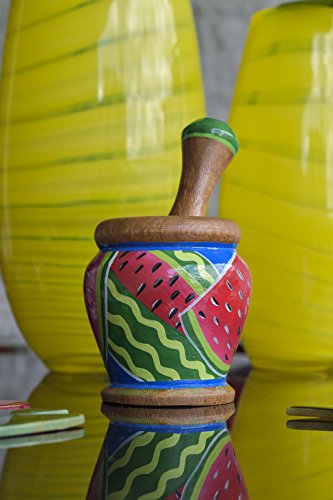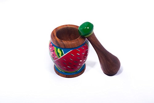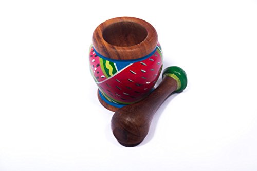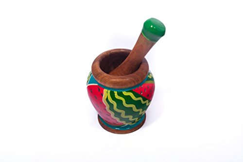 Hand Painted wooden Mortar and Pestle with a Tropical Design - Kitchen Decoration - Eco-friendly - Beautiful Gift - 3.9 Inch by 3.9 Inch - Nativo Crafts