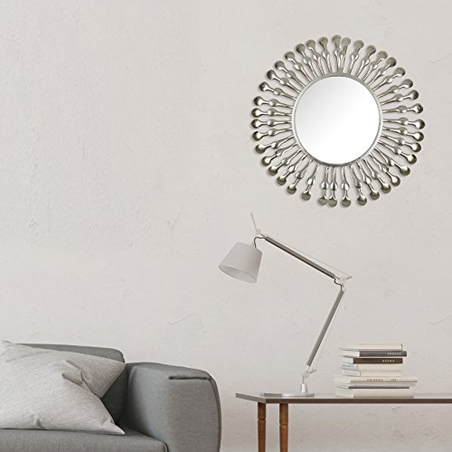 - Hanging wall accent mirror with decorative burst frame will brighten any bedroom, living room or bathroom.