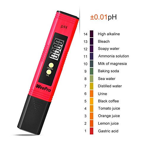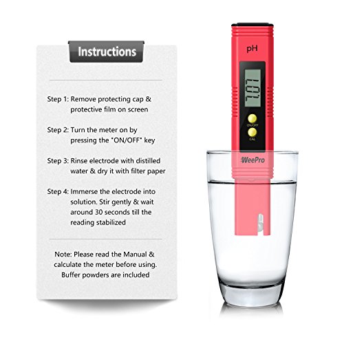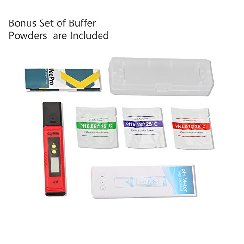 WeePro PH Meter Digital Water Quality Pen Tester with ATC & 3 Buffer Powders, for Pool, Aquarium, Hydroponics, Fishing, Household Drinking Water, 0.01 PH High Accuracy, Backlit LCD Display
