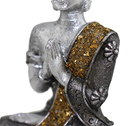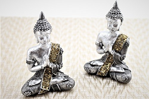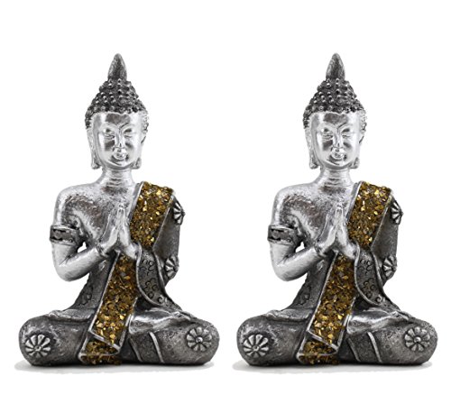 Pair of Small Feng Shui 4" Tall Thai Praying Meditating Silver Buddha Statue Figurine Feng Shui (2G16608) ~ We Pay Your Sales Tax