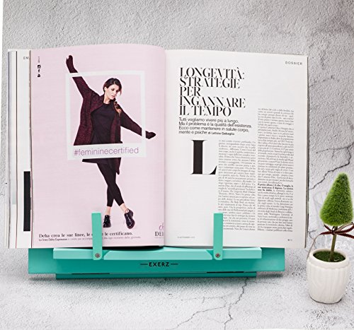 Exerz Wooden Reading Rest Cookbook Stand Cook Recipe Holder Bookrest – Premium Quality / Adjustable / Ideal for Book Ipad Tablet – 13.5 x 9.5 x 1" / 34 x 24 x 2 cm (Blue / Turquoise)