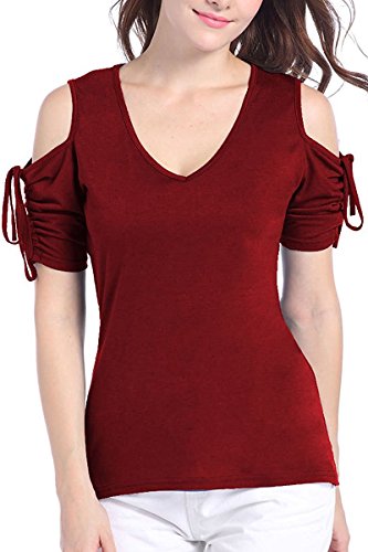 -. Title : Womens Sexy V Neck Cold Shoulder Pleated Short Sleeve Blouse Casual Tops