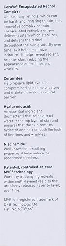 CeraVe Skin Renewing Cream Serum is designed to help reduce the appearance of fine lines and wrinkles while helping to repair and restore the skin barrier, resulting in brighter, smoother skin that looks healthy and radiant. It contains an encapsulated 1 percent retinol and ceramide complex, which stabilizes and delivers the retinol into the skin gradually over time so it won't cause harsh irritation like many retinols. The nongreasy and fast-absorbing formula, also contains vederine, a vitamin D analog known to provide epidermal and skin barrier support.Feature