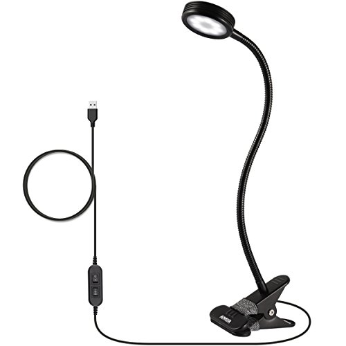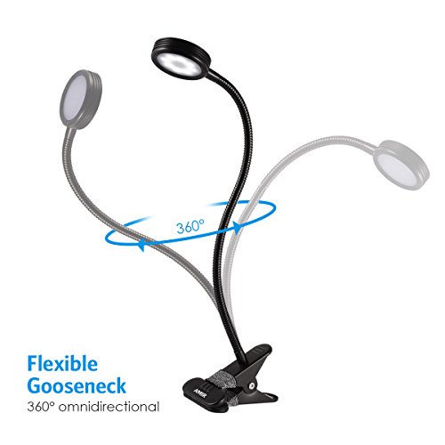 AMIR Clip on Book Light, Eye Care Reading Light, 2-Level Dimmer & 2-Mode Light Color Switchable with Flexible Arm, Aluminum Lamp Cover, for Headboard, Desk, Bedstead, Readers (AC Adapter Not Included)