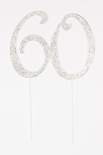-. Brand : Ella Celebration -. Color : Silver -. EAN : 0710551275184 -. Feature : Celebrate your 60th Birthday or Anniversary with this gorgeous cake topper! / This premium cake topper features beautiful genuine crystal rhinestones set in quality silver metal alloy / The number "60" measures approximately 4.5" tall and 5.5" wide; prongs measure 4.5" tall but can be easily trimmed to your desired height / Adds the perfect amount of sparkle and elegance to your birthday or anniversary cake / Remove prongs after use to save this gorgeous decoration as a keepsake for years to come! -. PackageQuantity : 1 -. ProductGroup : Kitchen -. ProductTypeName : KITCHEN -. Title : 60 Cake Topper for 60th Birthday or Anniversary - Silver Rhinestone Metal Number Party Decoration -. UPC : 710551275184